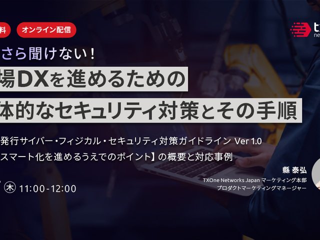 グローバルで加速度的に進む工場のDX化と、サイバーセキュリティリスク増加の現状を受けて、2024年4月に工場システムにおけるサイバー・フィジカル・セキュリティ対策ガイドラインVer1.0【別冊:スマート化を進めるうえでのポイント】が発行されました。そこで本ウェビナーでは別冊が発行された社会的な背景と、本ドキュメントに記載されている重要なポイントを説明させていただくとともに、弊社の豊富な事例に基づき、工場のDX化を進めるための具体的なセキュリティ展開例をお話しさせていただきます。