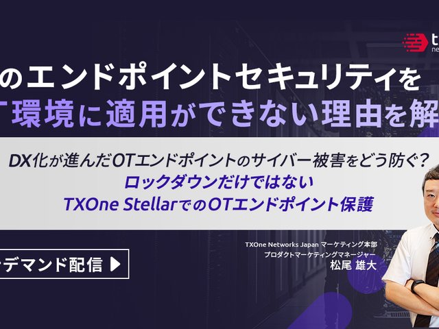 OT環境では技術的・運用的な側面からエンドポイント保護を適用することは難しいと考えられがちです。また、エンドポイント保護ができたとしてもロックダウンによる保護しか適用できていないというケースが多く存在します。一方で脅威の高度化や製造業のDX化が進む中でロックダウンだけが必ずしも最適な保護方法ではないというケースも出てきています。本ウェビナーではTXOneのエンドポイント保護「Stellar」はなぜOTエンドポイントに適用することが可能なのか、なぜロックダウン以外の機能も多く提供しているのかなどについてご紹介させて頂きます。