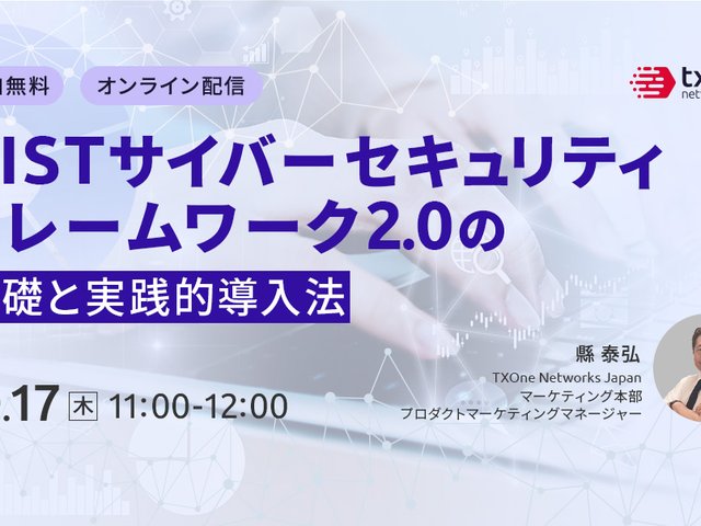 2024年2月26日に米国国立標準技術研究所(NIST)が策定したNIST サイバーセキュリティフレームワーク 2.0は、その対象が従来の重要インフラから、より幅広い分野でのサイバーリスク管理として利用可能となりました。世界中で広く活用されていることから国際標準のサイバーセキュリティフレームワークに変わりつつあります。バージョン2.0ではさらに最新の脅威やリスクに対応した強化が施されています。そこで本ウェビナーでは、NIST サイバーセキュリティフレームワーク 2.0の基本概念から、改訂の背景、改訂のポイントを説明させていただき、自社工場のOT環境に適用するための課題やITとOTの統合における具体的なセキュリティ対策についてご紹介させていただきます。 組織に合ったセキュリティ対策の立案・実行に役立つヒントを提供しますので是非ご参加ください。