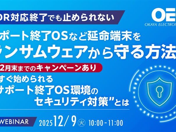 セッションでは、12月末までのキャンペーン情報のご案内に加え、実際の導入事例も交えながら、工場やインフラ設備など、ネットワーク分離やOS制限といった制約のある環境下でも、“延命”と“防御”を両立させる具体策をご紹介します。
